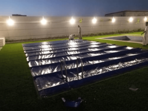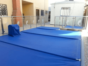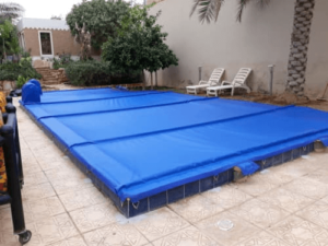 • تساعد علي تغطية المسابحة مما يحافظ علي المياه نظيفة وتمنع دخول الأتربة وأوراق الشجر والأوساخ داخل المسبح.
